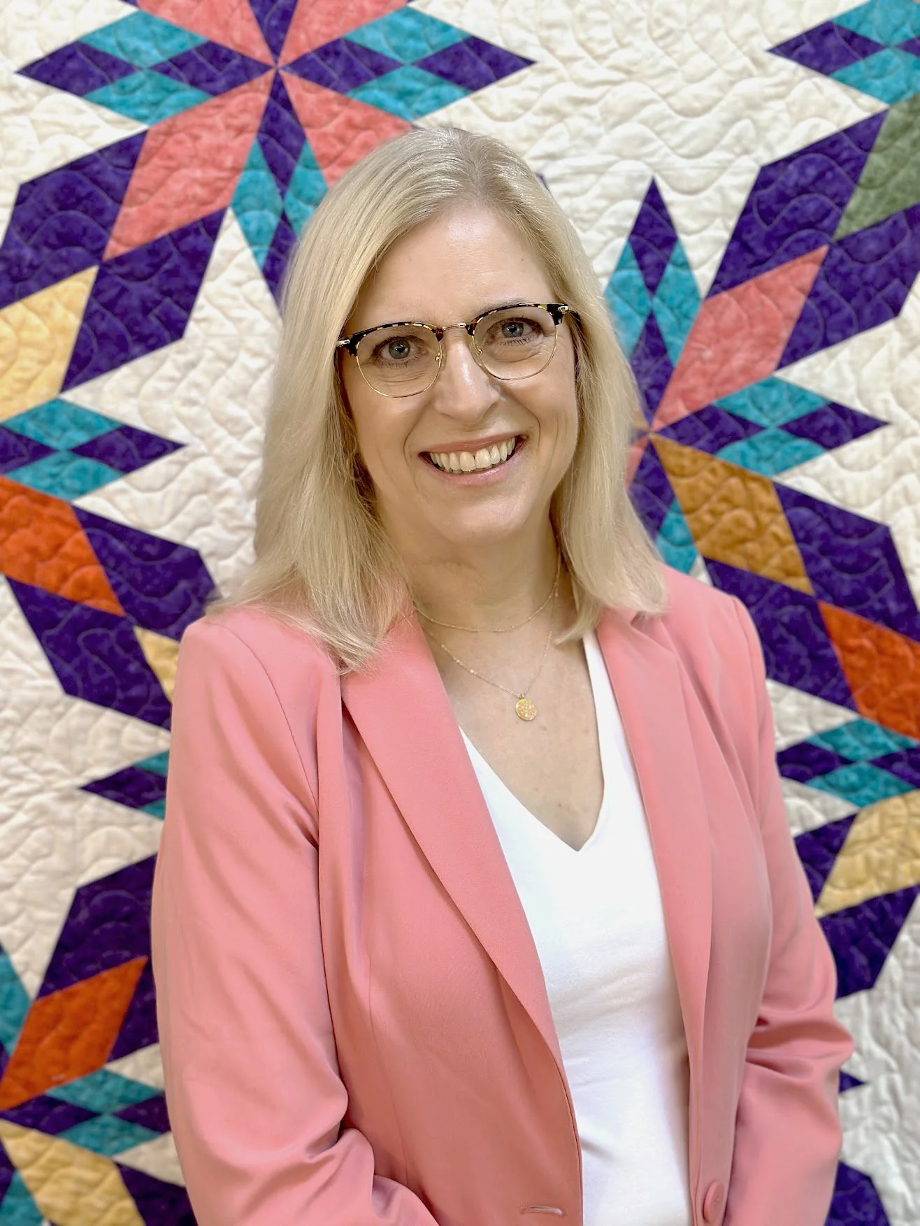 Hi! My name is Heather Asbach, aka the P3 Quilter. Like many of you, I began sewing at a young age, inspired by my grandmothers and aunts. For many years, I sewed clothing for myself and our four children. One day, a friend gave me a baby quilt for our newborn. I was so inspired by the beauty and color of the pattern, that I began to quilt. I continued to quilt off and on while rearing our children, and when my husband and I reached empty nest, I decided to make quilting my next “season” of life. In 2023, I had the privilege of becoming a Studio 180 Design Certified Instructor, and now enjoy, in addition to our growing family numbering seven grandsons, lecturing and teaching about the piecing techniques developed by Deb Tucker and her team to help all of us achieve our goals of well-made quilts that bring beauty into the world around us.
